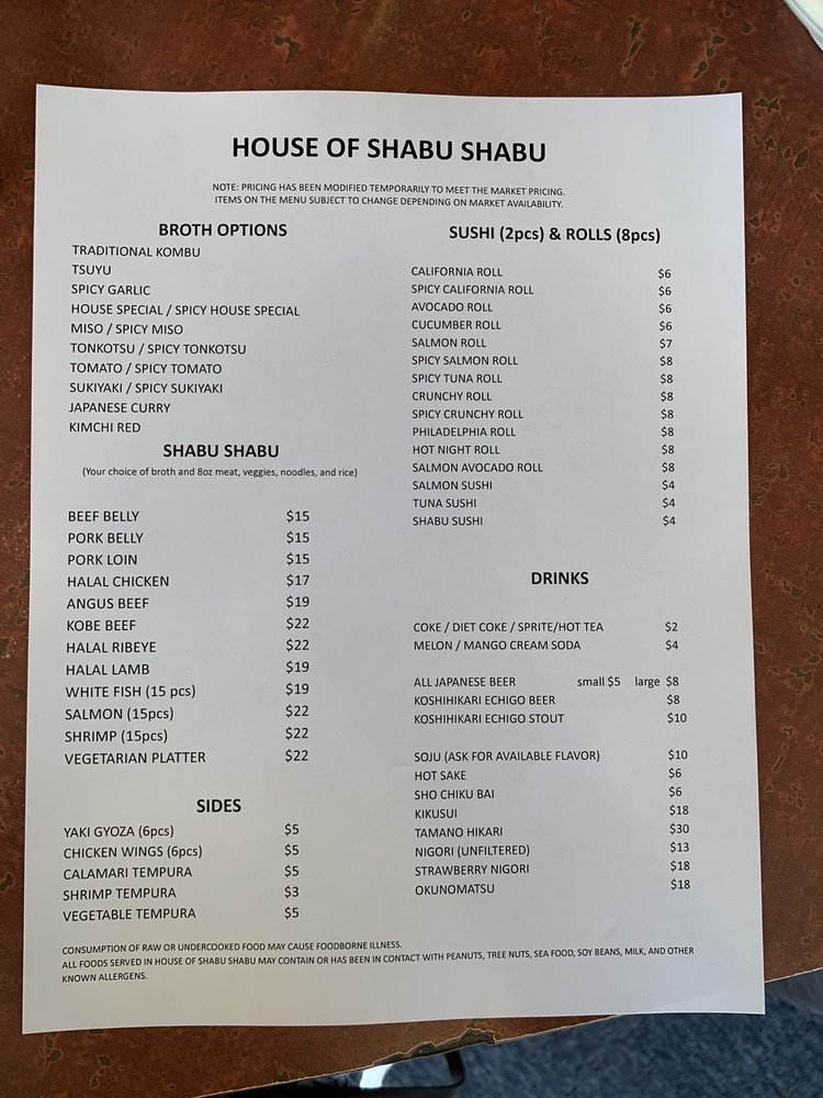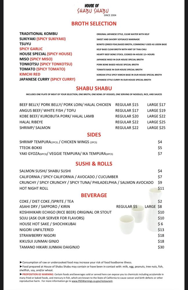 House of Shabu Shabu - Temp. CLOSED Menu (Update 2025)